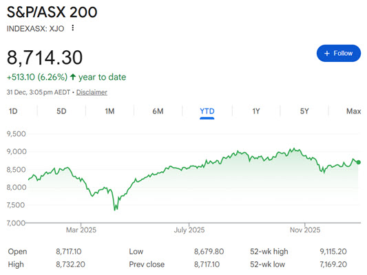- The ASX200 has finished the year below the value of 22 July 2025 – there have been no nett gains for over 5 months!